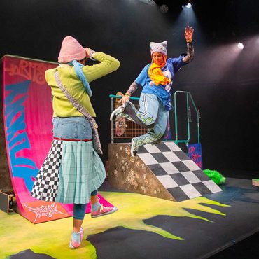 Perfect for ages 8–12 (and anyone who remembers being that age), Sisters 360 is boisterous, joyful and inspiring – a celebration of skateboards, sisterhood and standing proud.