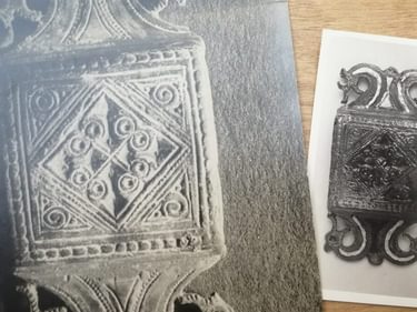 By cross-referencing the archival images of these brooches, we can see how much they have degraded since their excavation. The square brooch with the chased details was once intact, and was broken and repaired before its donation to the museum. The round brooch has suffered some loss between the original images and those taken in the 1980s. By examining that area under magnification, I discovered that it is fragile and cracked, suggesting that I could use a conservation glue to strengthen the area.