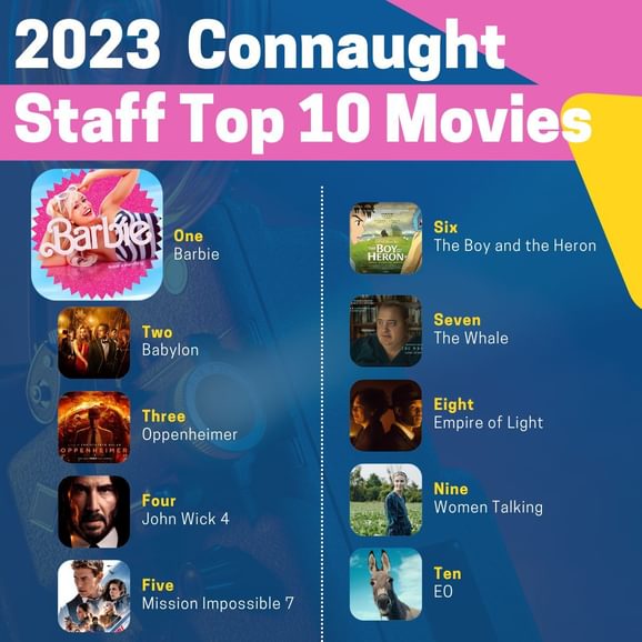 Our list is topped by Barbie, a film I enjoyed and was delighted to see get the success it deserves. It doesn’t feature in my personal Top 10, but hey-ho! I was also glad to see EO, a small budget foreign language film about a donkey, pop into the list. A few of our team members were lucky enough to see The Boy and The Heron at festivals, and those votes saw it sneak into the list at the last minute. I suspect it would have been higher if it had been released earlier.