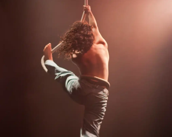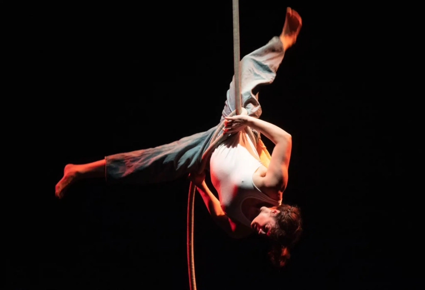 I enjoy making shows that collage together different styles of performance. So A Spectacle of Herself uses aerial rope, which is my main circus discipline, but there are also scenes that use lip sync, video, dance and autobiographical writing. The show is an exploration of what it means to feel seen. And to take up space as a queer and autistic person. You can expect to laugh, maybe feel moved. Maybe feel seen in some ways if the things I talk about resonate with you.