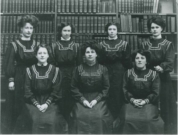 Marian Frost (seated, centre) was the first curator of Worthing Museum and Gallery. She played a huge role in persuading philanthropist Andrew Carnegie (of Carnegie Hall fame) to give funds for a new library and museum for Worthing in 1908.