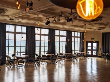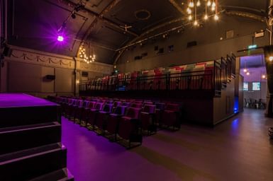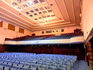 - The Assembly Hall has level access to the main entrance, ground-floor seating area, bar, and toilets. On the left-hand side of the auditorium, there are designated wheelchair user spaces. There is no lift to the balcony.