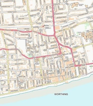 Worthing (WRH) station is a 10-minute walk away (0.5 miles)